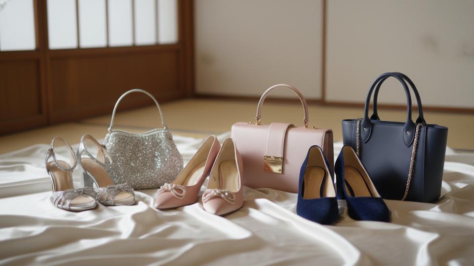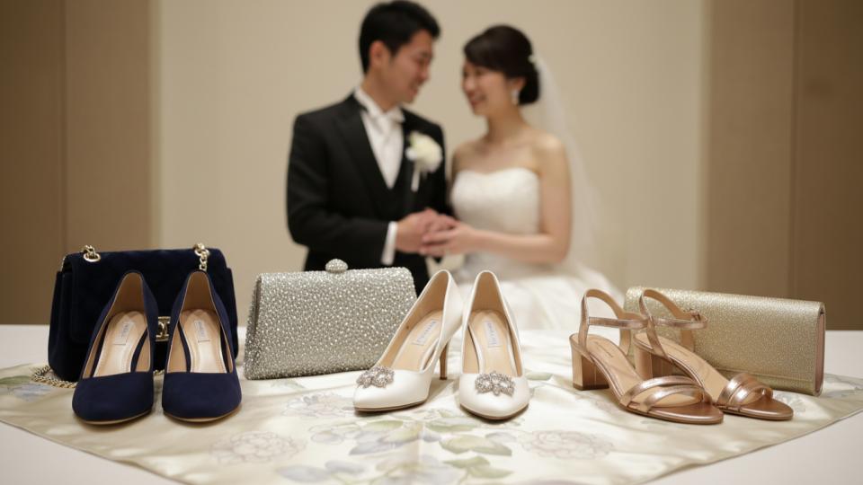 結婚式で靴とバッグを選ぶ際は、デザイン、素材、色合いに細やかな配慮が必要です。