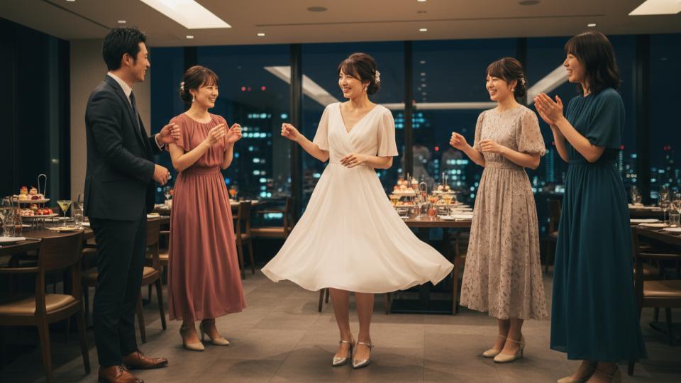 花嫁さまが司会者に呼ばれたり、景品を渡すために立ち上がったり、あるいはゲストからの急なリクエストに応えたりと、思わぬ場面で体を動かす必要が出てくるかもしれません。